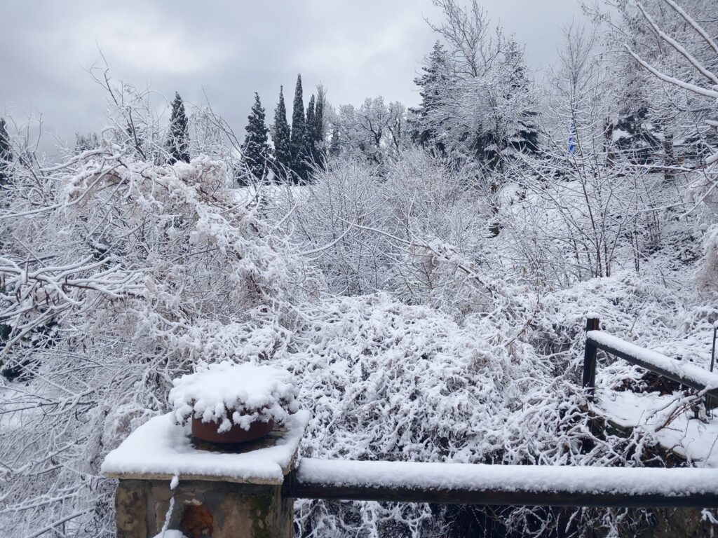Άσπρισαν τα Τρίκαλα Κορινθίας – Χιονίζει πάνω από τα 900μ υψόμετρο (φωτογραφίες)