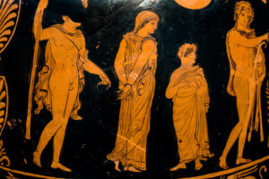 Στα καλύτερα χρόνια της Αθηναϊκής Δημοκρατίας όπου η Αθήνα έχει αποκτήσει αυτοπεποίθηση και αυτάρκεια γράφει ο «ἐκ Κολωνοῦ» Σοφοκλής (496 – 406 π.Χ.) τα 123 έργα του.