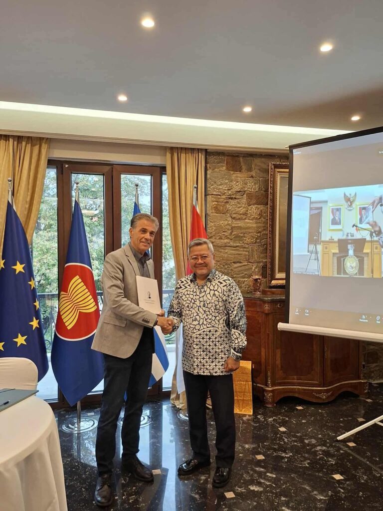 Τον Πρόεδρο του Επιμελητηρίου Κορινθίας κ. Παναγιώτη Λουζιώτη υποδέχτηκε ο Πρέσβης της Ινδονησίας κ. Dr. Bebeb A.K. Nugraha Djundjunan με σκοπό να θέσουν έναν κοινό άξονα δράσεων για την ανάπτυξη συνεργασιών. Η συνάντηση έλαβε χώρα παράλληλα με τη συμμετοχή του Προέδρου κ. Λουζιώτη στο 7ου Επιχειρηματικό Φόρουμ Ινδονησίας – Ελλάδας.