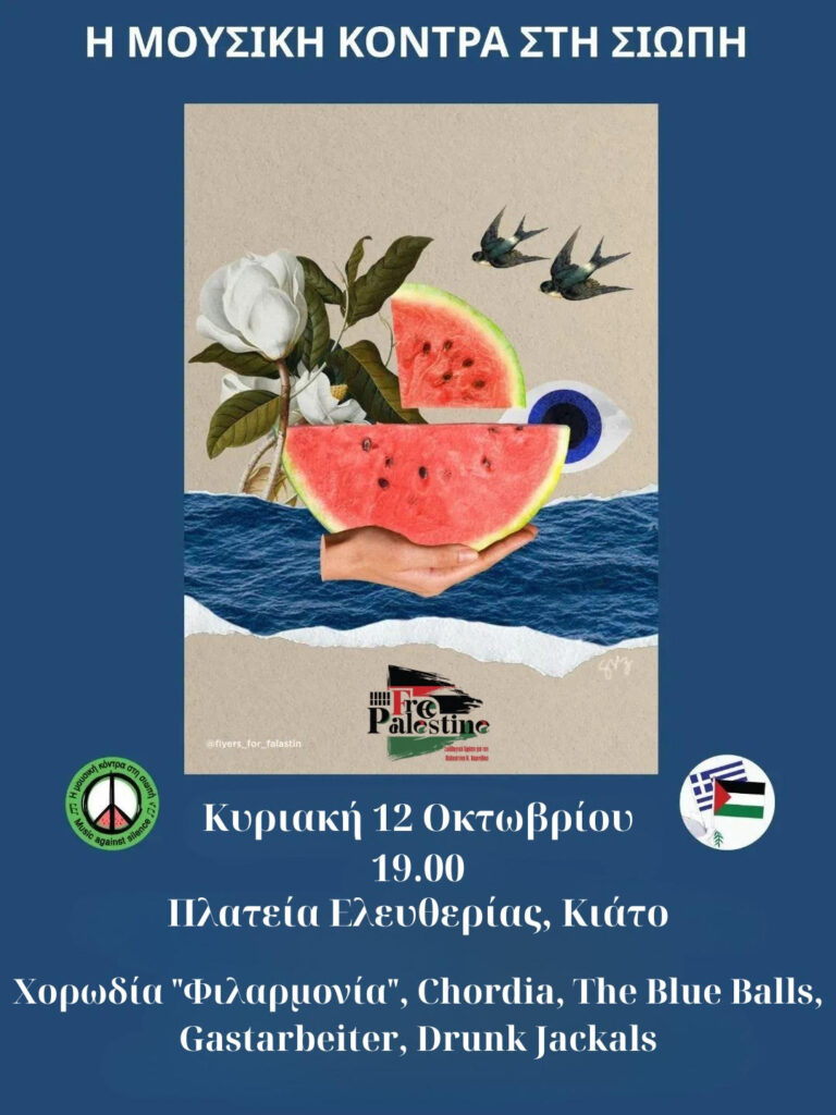 Με όχημα τη μουσική βαδίζουμε κόντρα στη σιωπή, κόντρα στην ουδετερότητα, κόντρα στην απάθεια, κόντρα στη συνενοχή. Ενώνουμε τις μουσικές μας με τις φωνές των λαών που αντιδρούν στο σιωνιστικό έγκλημα διαρκείας, στη γενοκτονία, στην πειρατεία, στην καταπάτηση των ανθρωπίνων δικαιωμάτων.