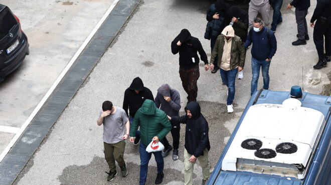 Οι κατηγορούμενοι οδηγήθηκαν το πρωί στα δικαστήρια της πρώην Σχολής Ευελπίδων, όπου παρουσιάστηκαν ενώπιον του Έλληνα Ευρωπαίου ανακριτή.