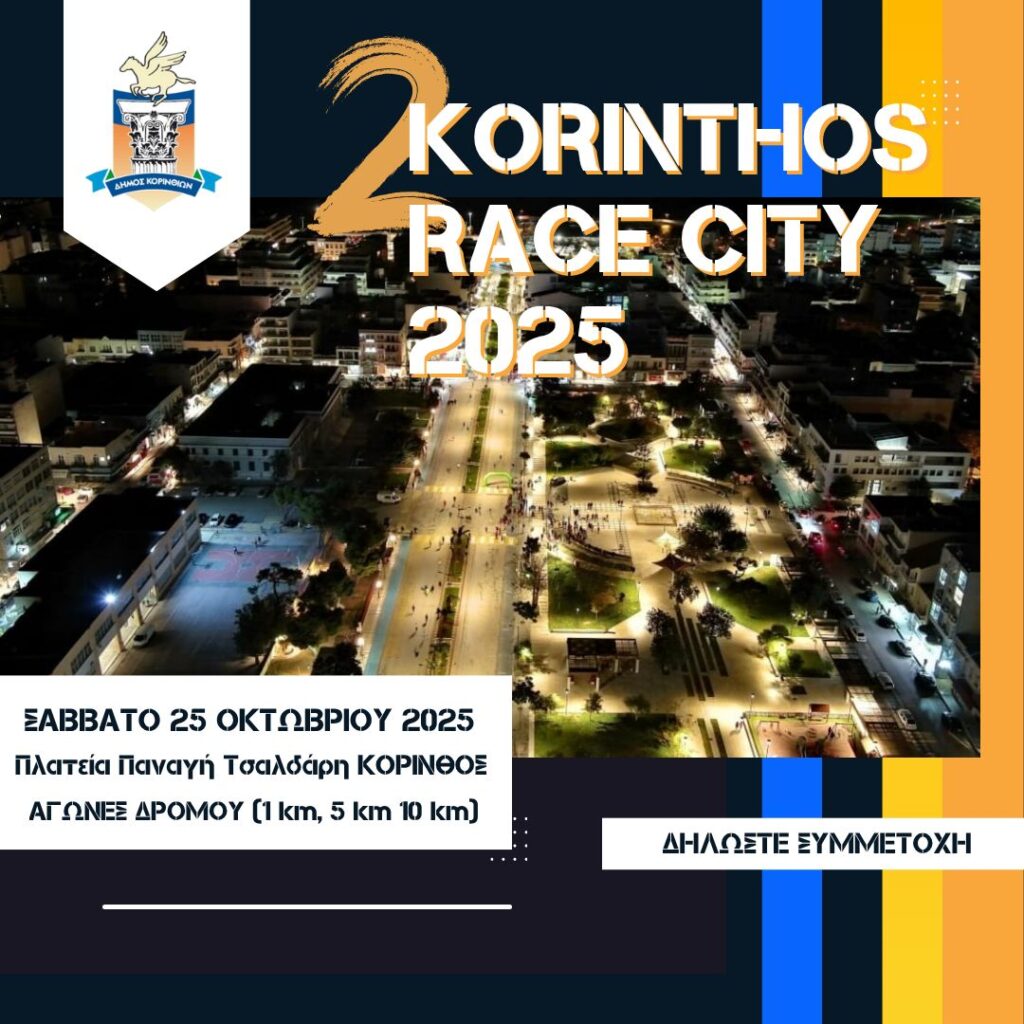 Μετά τη μεγάλη επιτυχία του περσινού πρώτου Korinthos Race City 2025 που συγκέντρωσε εκατοντάδες αθλητές από όλη την Ελλάδα, ο Δήμος Κορινθίων διοργανώνει και φέτος τον αγώνα δρόμου που έγινε θεσμός!