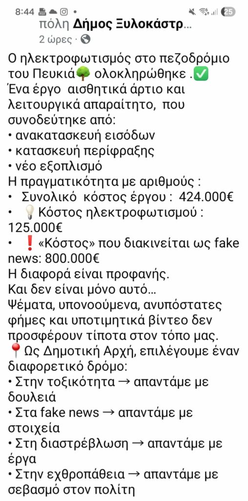 Απέναντι σε αυτή την πρακτική,ο κ. Αποστολόπουλος δηλώνει ότι η Δημοτική αρχή επιλέγει έναν διαφορετικό δρόμο: της τεκμηρίωσης, της διαφάνειας και της παραγωγής έργου. Όπως τονίζεται, η απάντηση στα fake news δεν μπορεί παρά να είναι τα ίδια τα στοιχεία και τα ολοκληρωμένα έργα που παραδίδονται στους πολίτες.